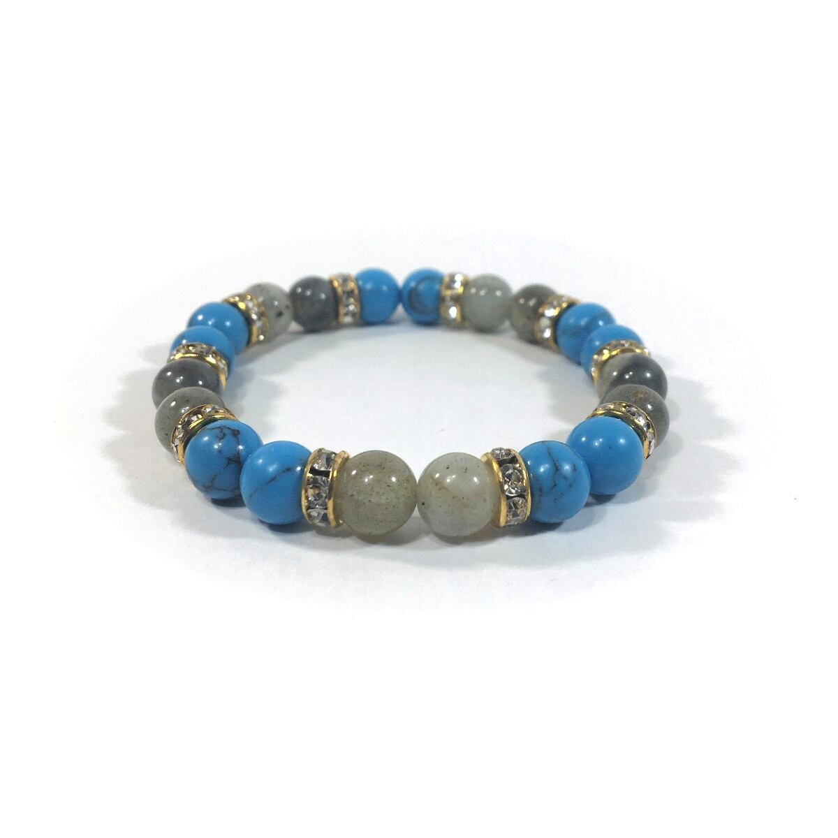 ターコイズ&ラブラドライト パワーストーン ブレスレット 8mm(ゴールド)レディース 女性 数珠ブレス 開運 プレゼント ギフト