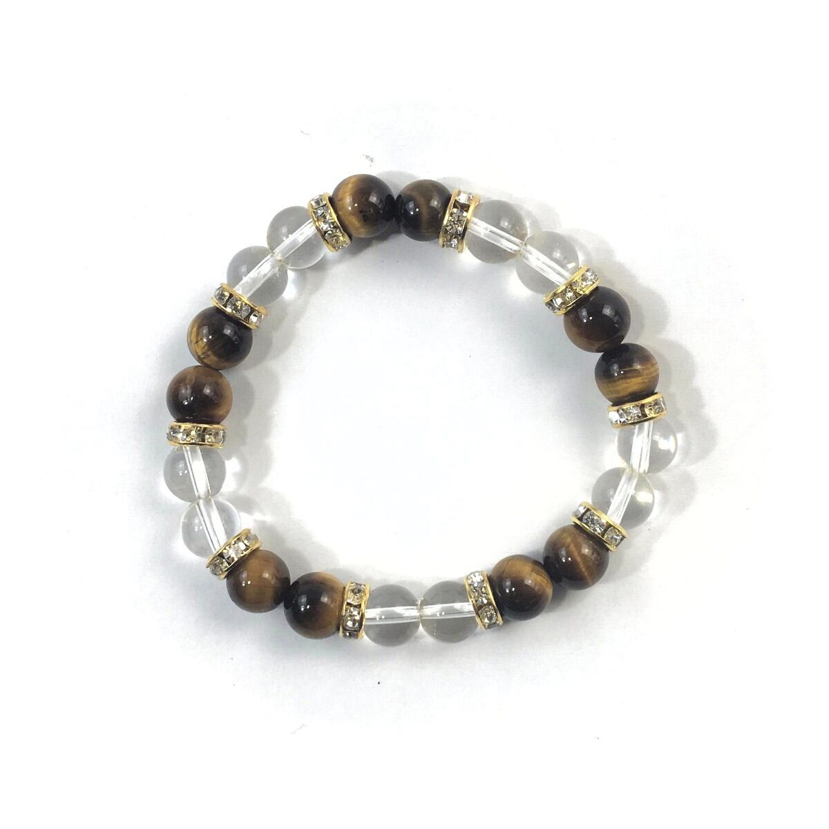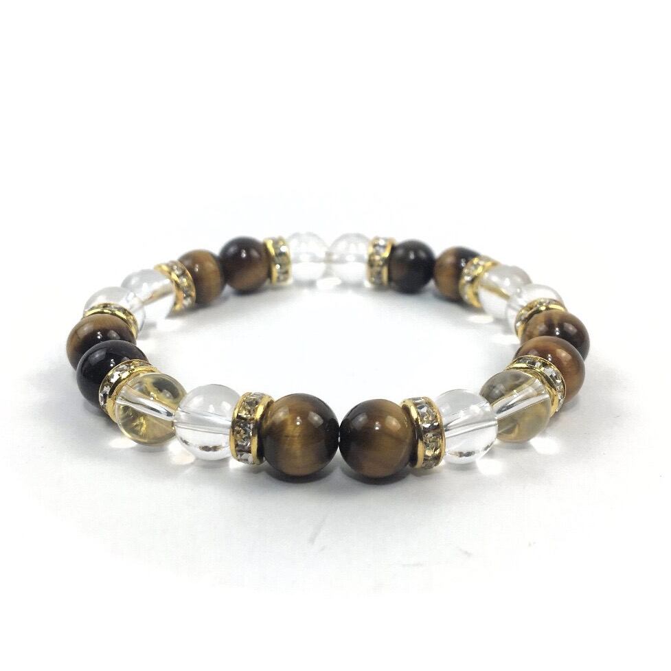 水晶&タイガーアイ パワーストーン ブレスレット 天然石 8mm(ゴールド)レディース 女性 数珠ブレス 開運 プレゼント ギフト