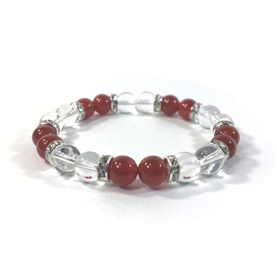 水晶&赤瑪瑙 パワーストーン ブレスレット 天然石ブレスレット 8mm(シルバー)レディース 女性 数珠ブレス 開運 プレゼント ギフト