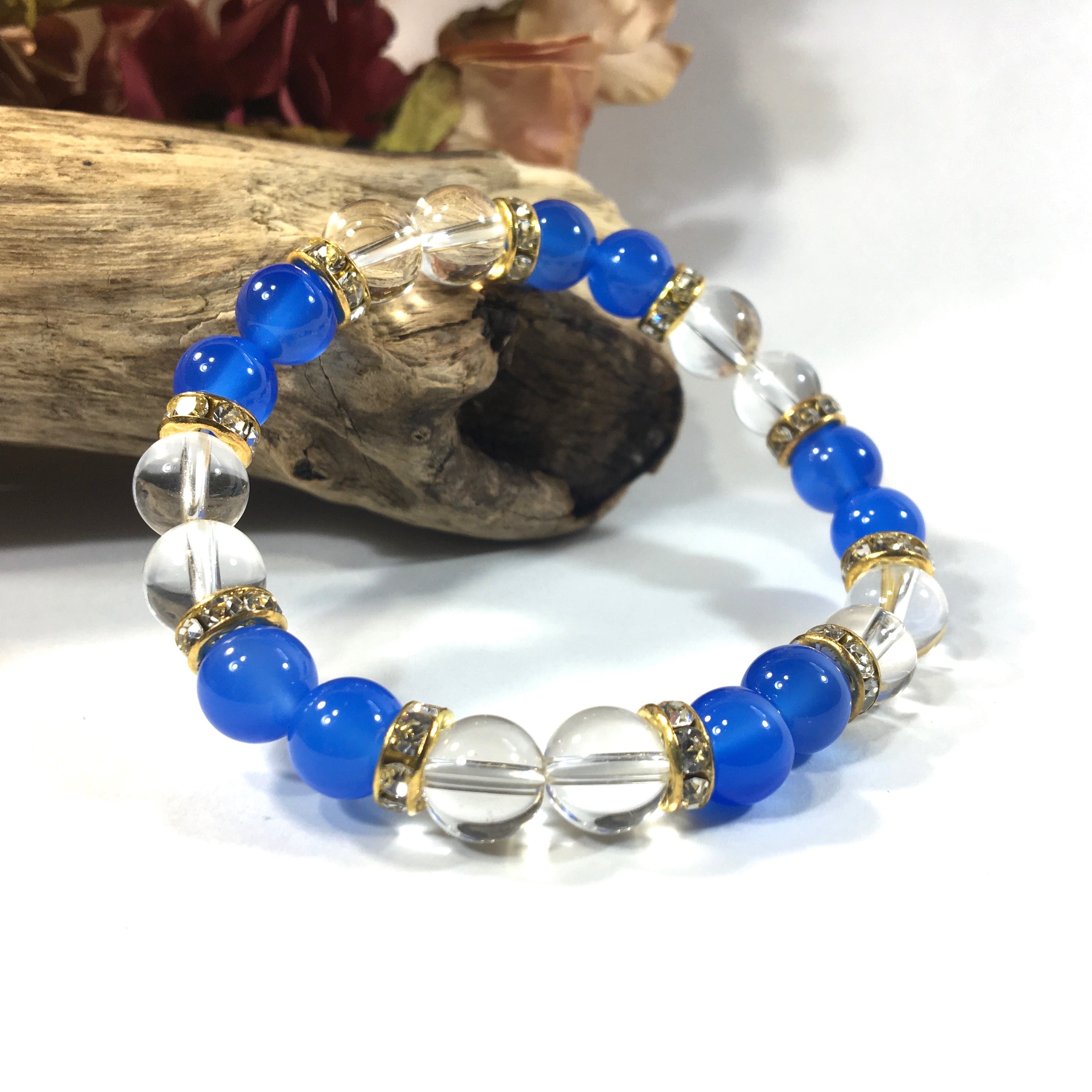 水晶&青瑪瑙 パワーストーン ブレスレット 天然石ブレスレット 8mm(ゴールド)レディース 女性 数珠ブレス 開運 プレゼント ギフト