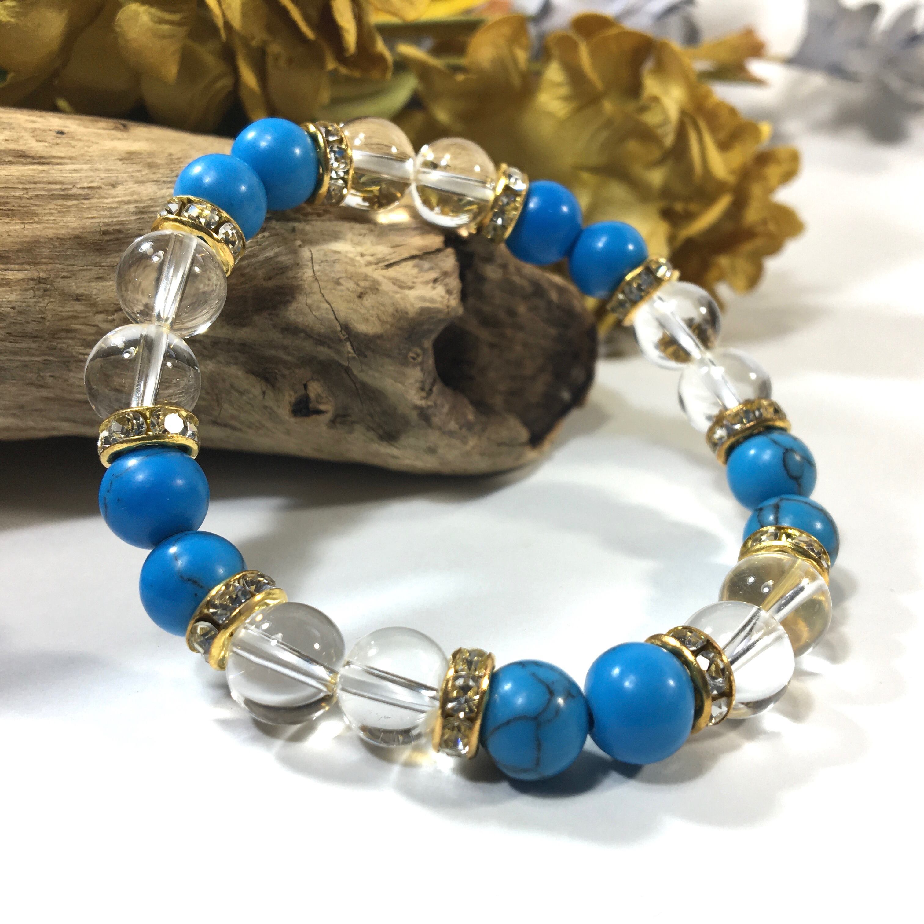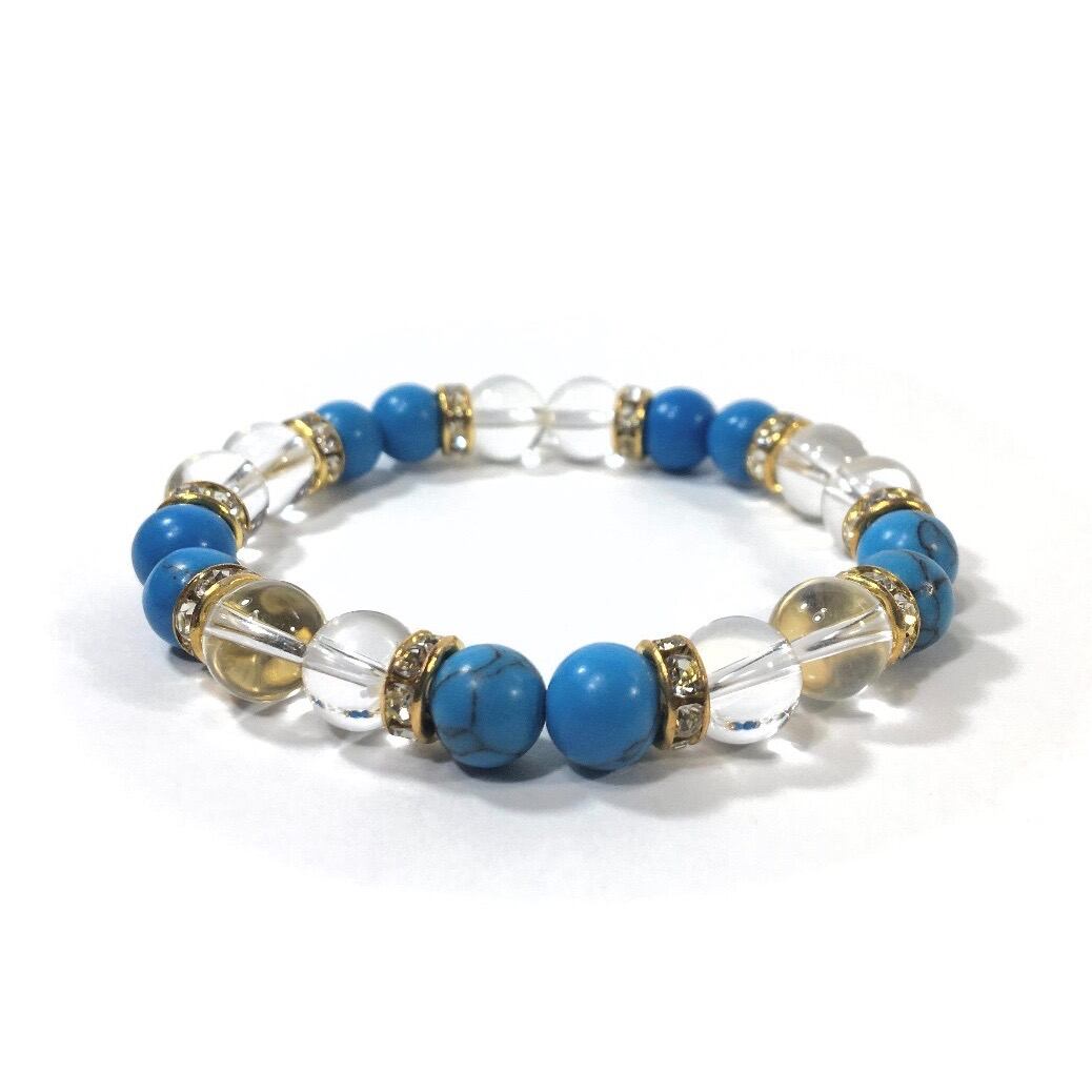 水晶&ターコイズ パワーストーン ブレスレット 8mm(ゴールド)レディース 女性 数珠ブレス 開運 プレゼント ギフト #1