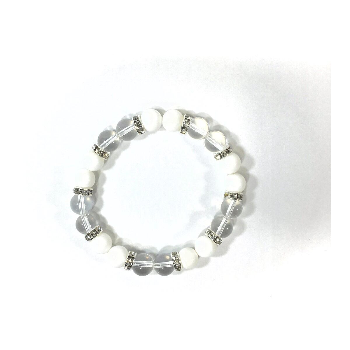 水晶&ホワイトオニキス パワーストーン ブレスレット 天然石 8mm(シルバー)レディース 女性 数珠ブレス 開運 プレゼント ギフト