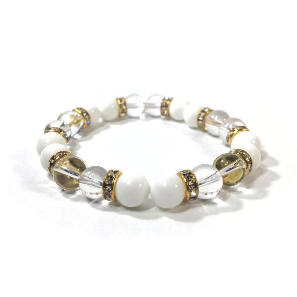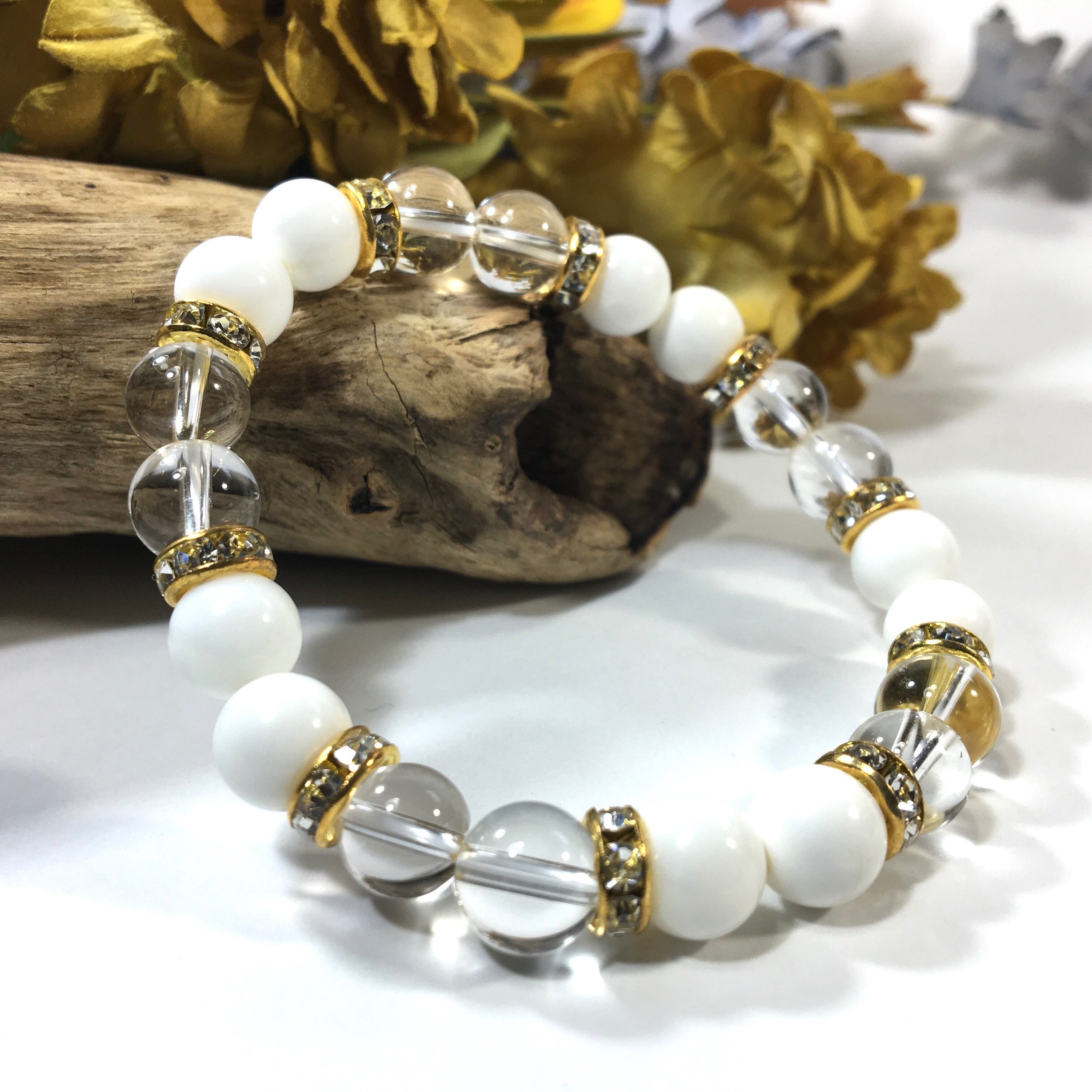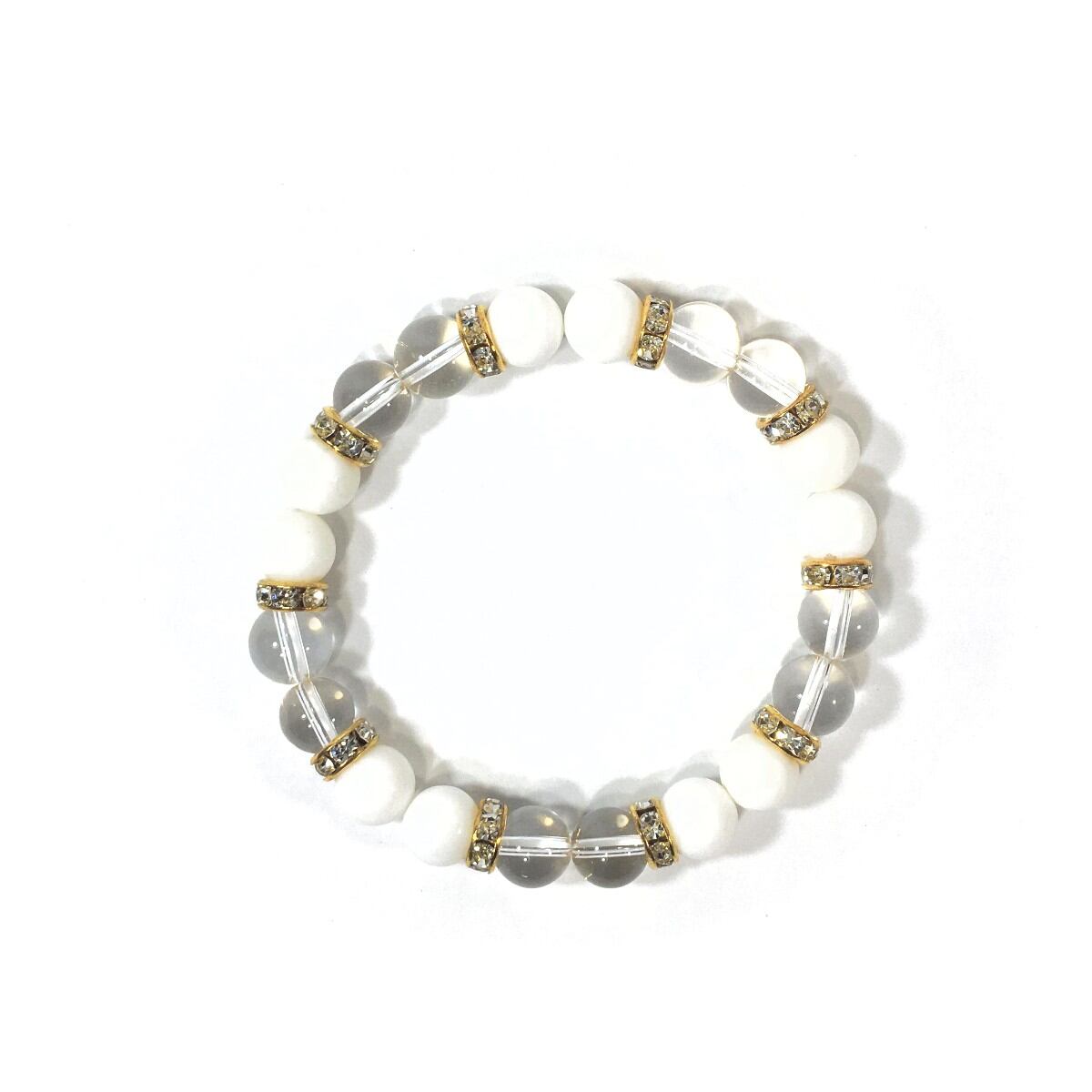 水晶&ホワイトオニキス パワーストーン ブレスレット 天然石 8mm(ゴールド)レディース 女性 数珠ブレス 開運 プレゼント ギフト