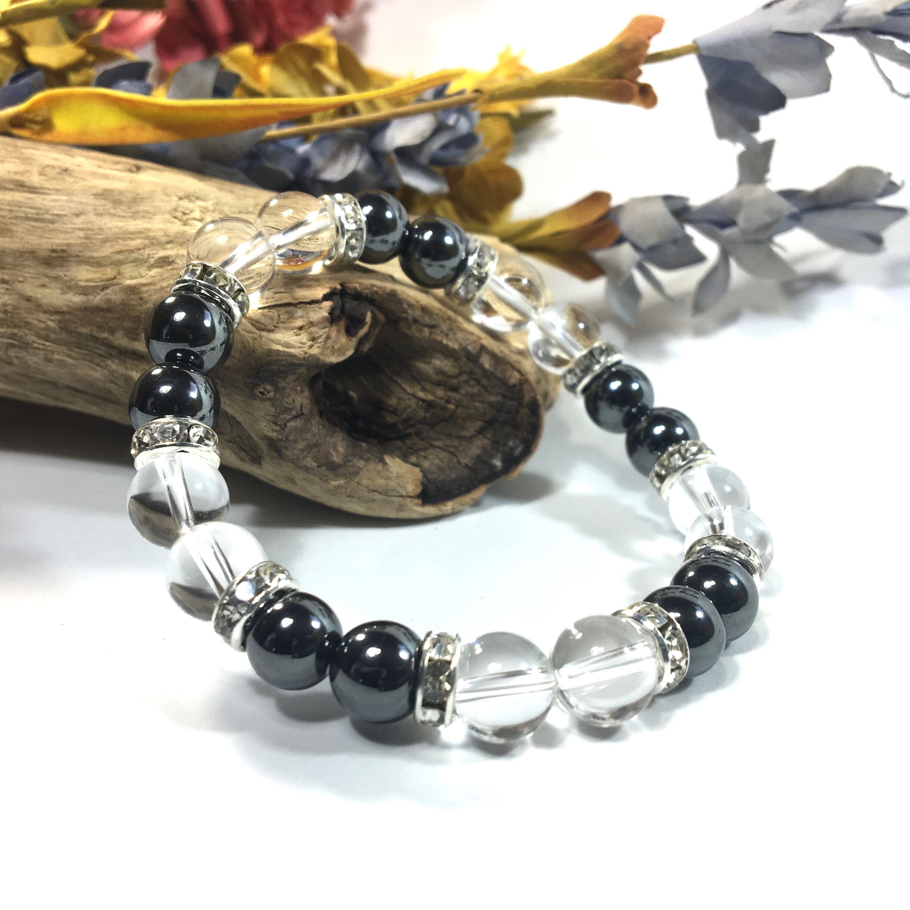 水晶&ヘマタイト パワーストーン ブレスレット 天然石 8mm(シルバー)レディース 女性 数珠ブレス 開運 プレゼント ギフト