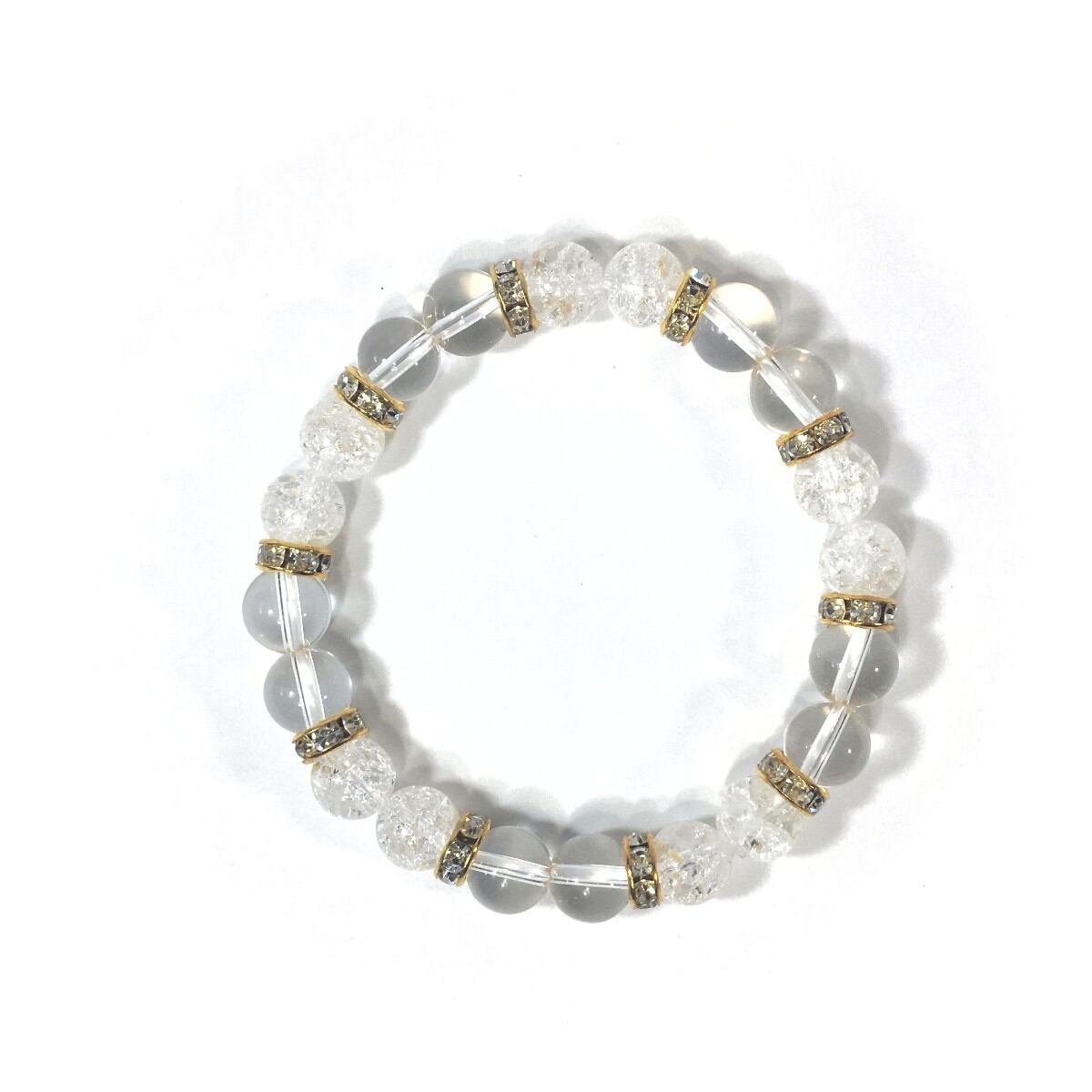 水晶&クラック水晶 パワーストーン ブレスレット 天然石 8mm(ゴールド)レディース 女性 数珠ブレス 開運 プレゼント ギフト