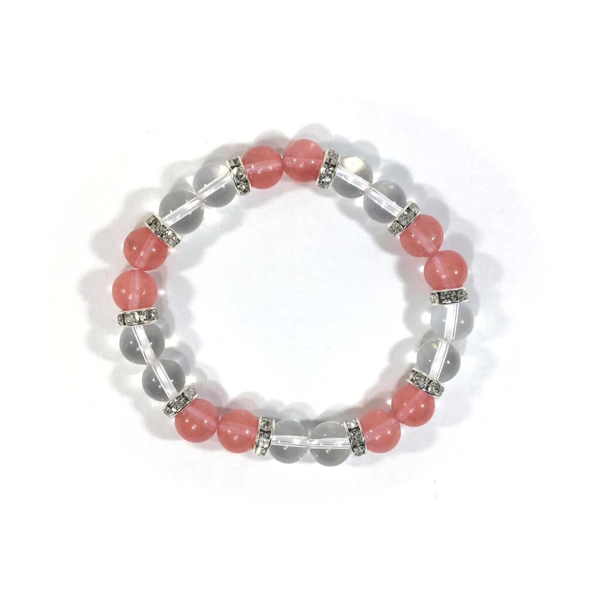 水晶&チェリークォーツ パワーストーン ブレスレット 天然石ブレスレット 8mm(シルバー)レディース 女性 数珠ブレス 開運 プレゼント ギフト
