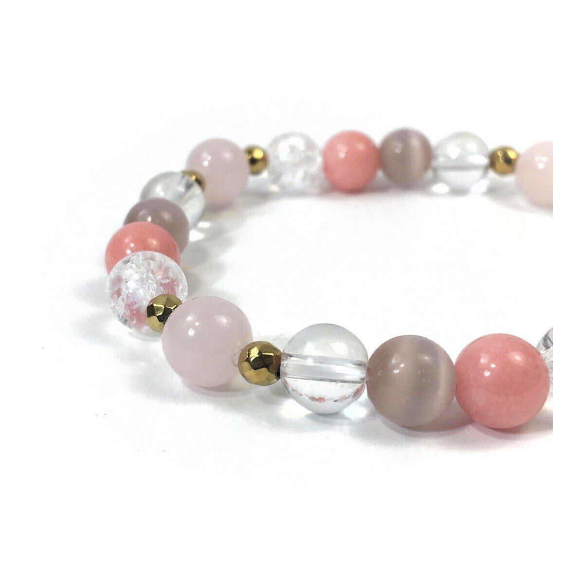 ローズクォーツ×キャッツアイ×水晶×ジェイド パワーストーン ブレスレット 8mm レディース 女性 数珠ブレス 開運 プレゼント ギフト