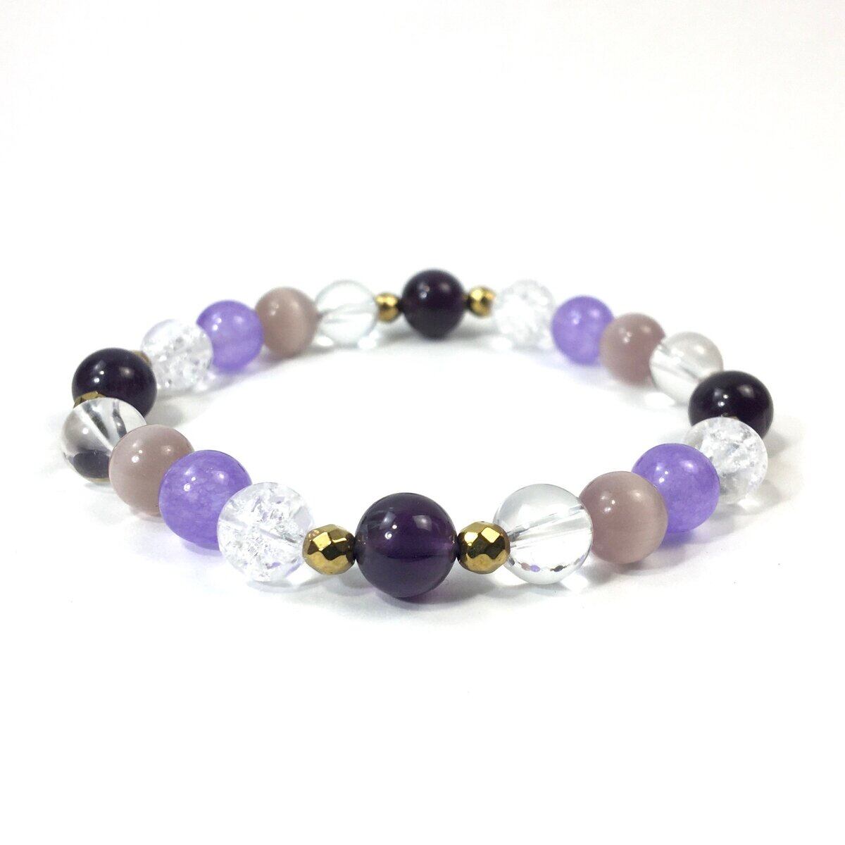 アメジスト×キャッツアイ×水晶×ジェイド パワーストーン ブレスレット 8mm レディース 女性 数珠ブレス 開運 プレゼント ギフト