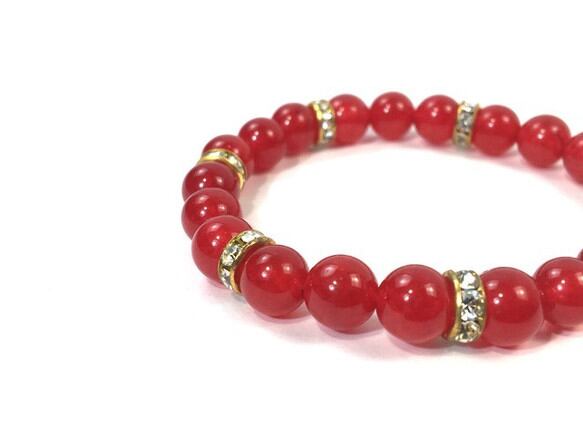 レッドジェイド パワーストーン ブレスレット ブレスレット 8mm (ゴールド)レディース 女性 数珠ブレス 開運 プレゼント ギフト