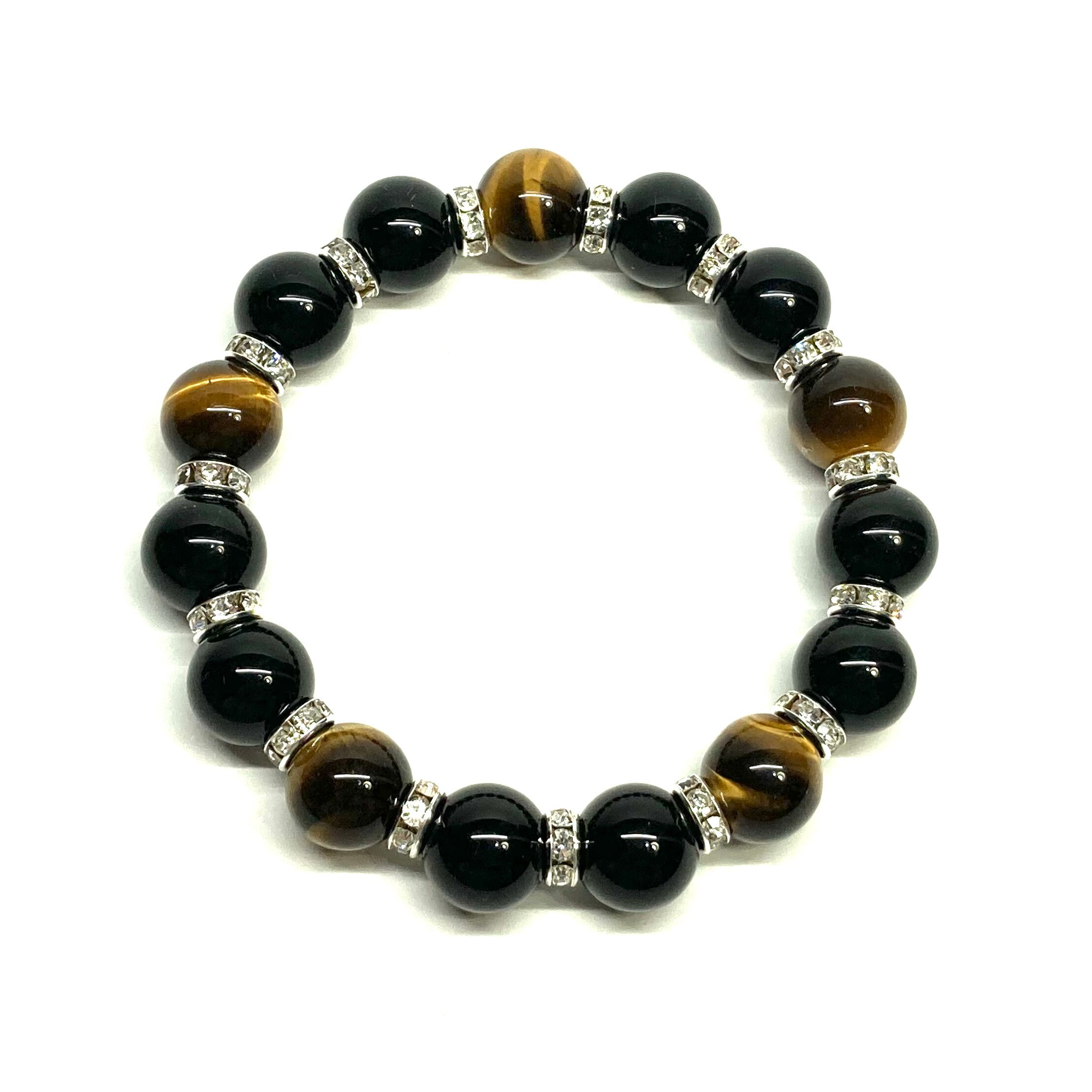 こちらは、モリオンとタイガーアイを組み合わせたパワーストーンブレスレットです。間にはロンデルを挟み高級感あるデザインに仕上げております。石大きさは12mm玉を使用して内周 約18cmです。気になる方は是非この機会にどうぞ。