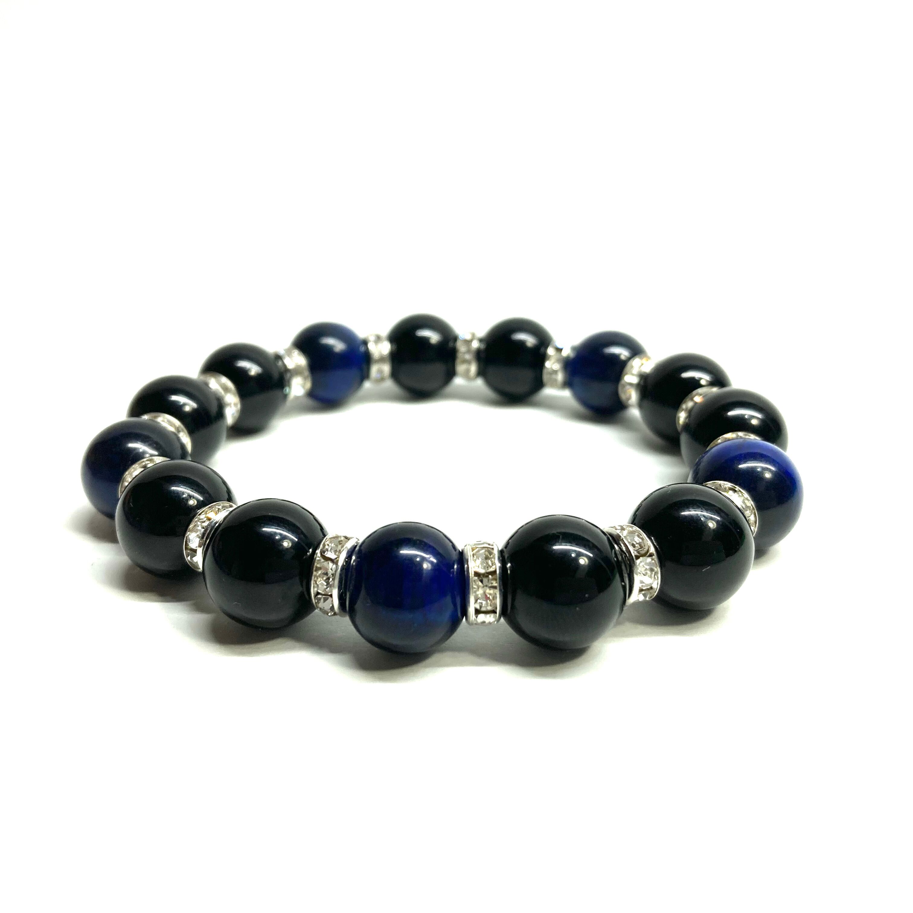 モリオン&ブルータイガーアイ パワーストーン ブレスレット 天然石ブレス (シルバー) 12mm 幸運 開運 厄払い メンズ 男性 ☆