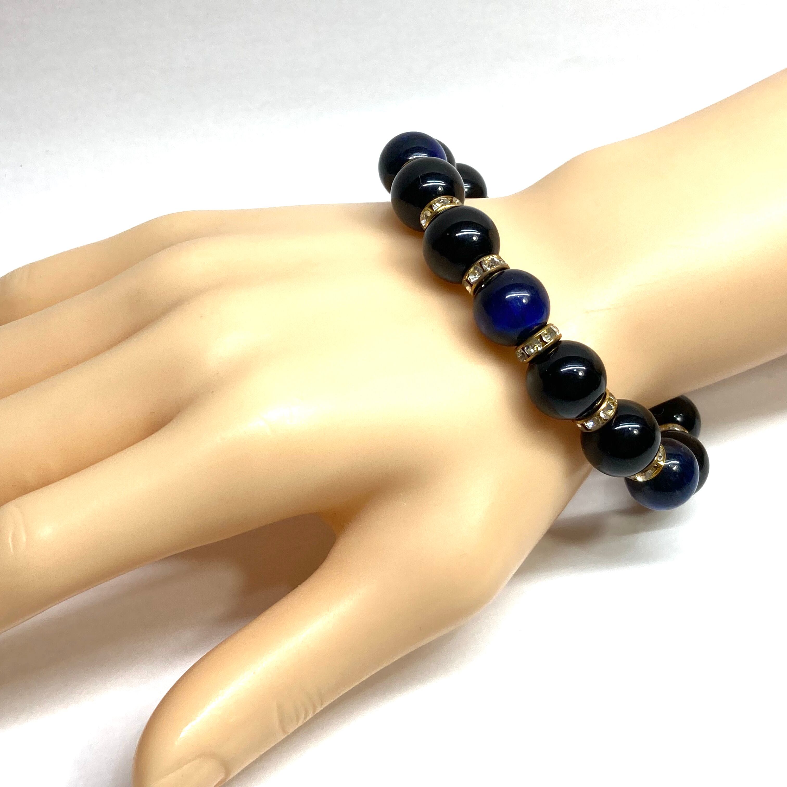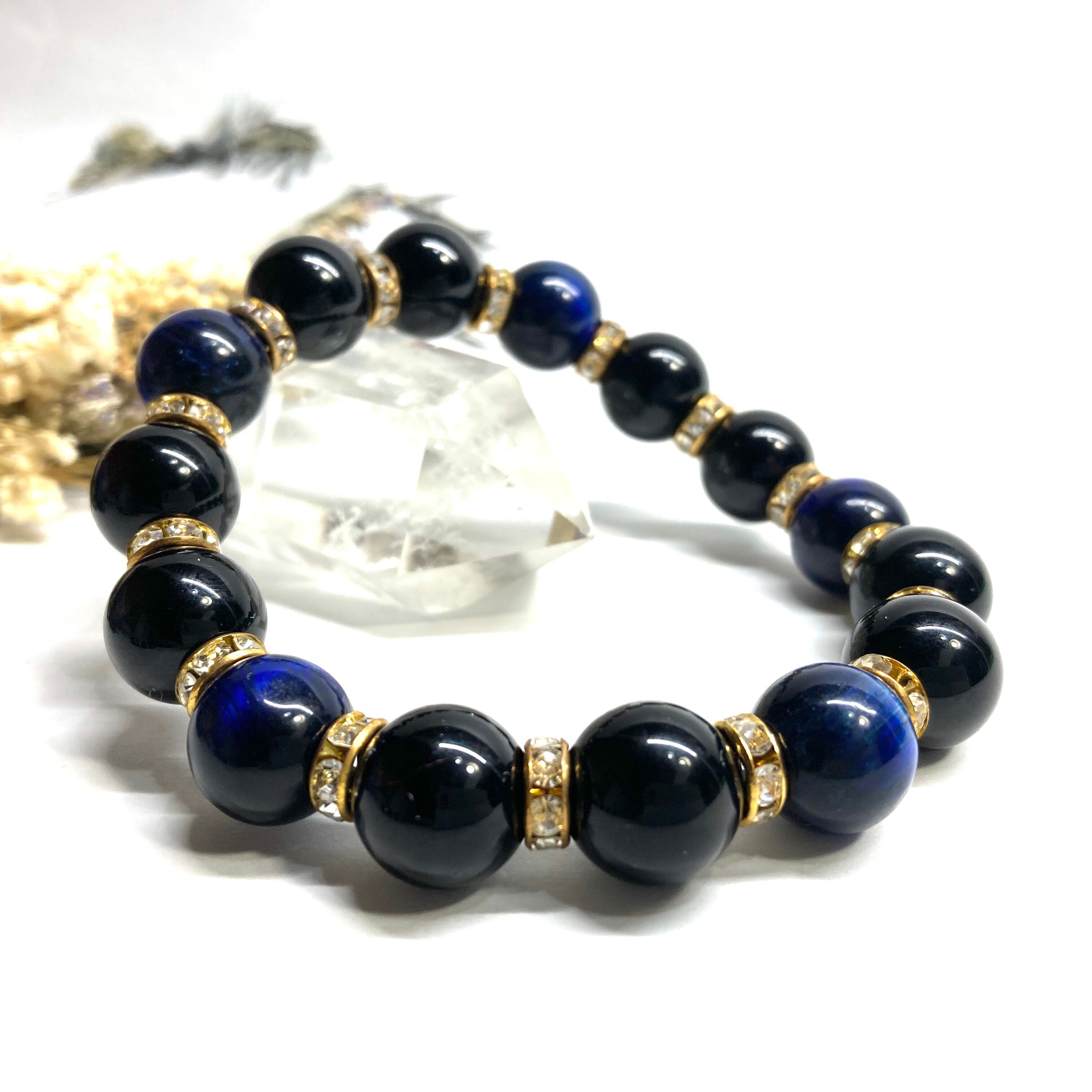 モリオン&ブルータイガーアイ パワーストーン ブレスレット 天然石ブレス (ゴールド) 12mm 幸運 開運 厄払い メンズ 男性 ☆
