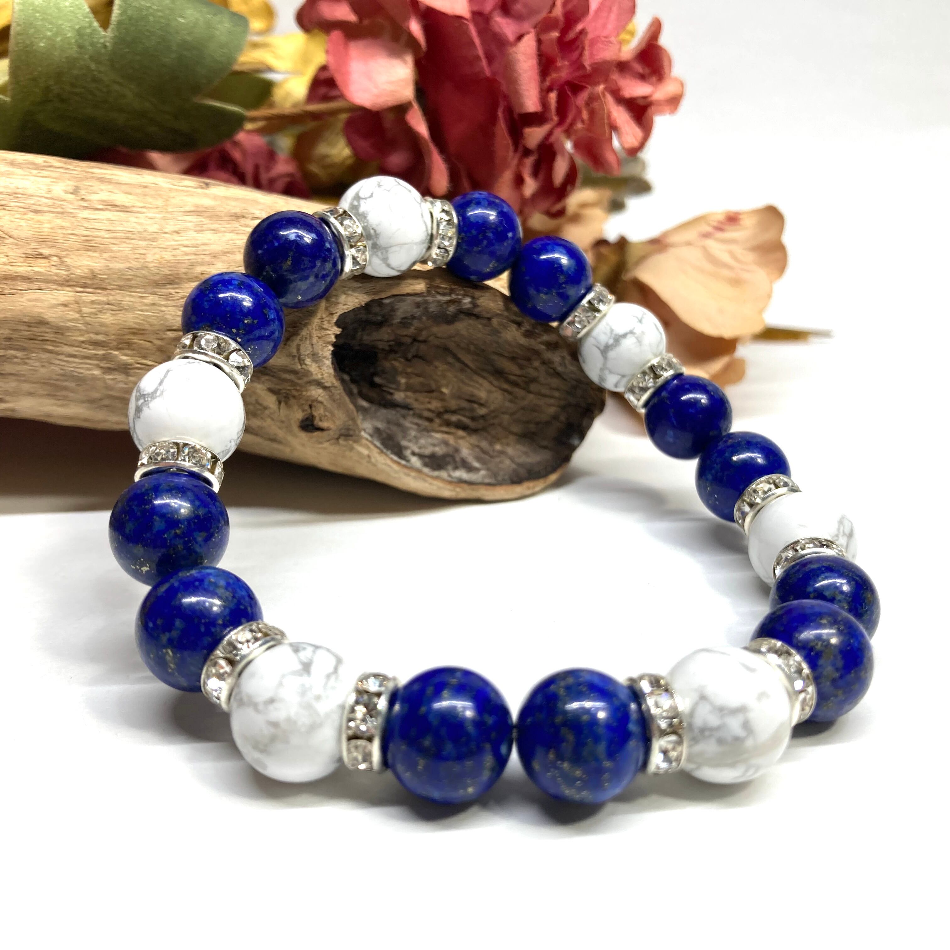 ラピスラズリ&ハウライト パワーストーン ブレスレット 天然石ブレス (シルバー) 10mm メンズ・レディース ストレス解消 お守り ☆