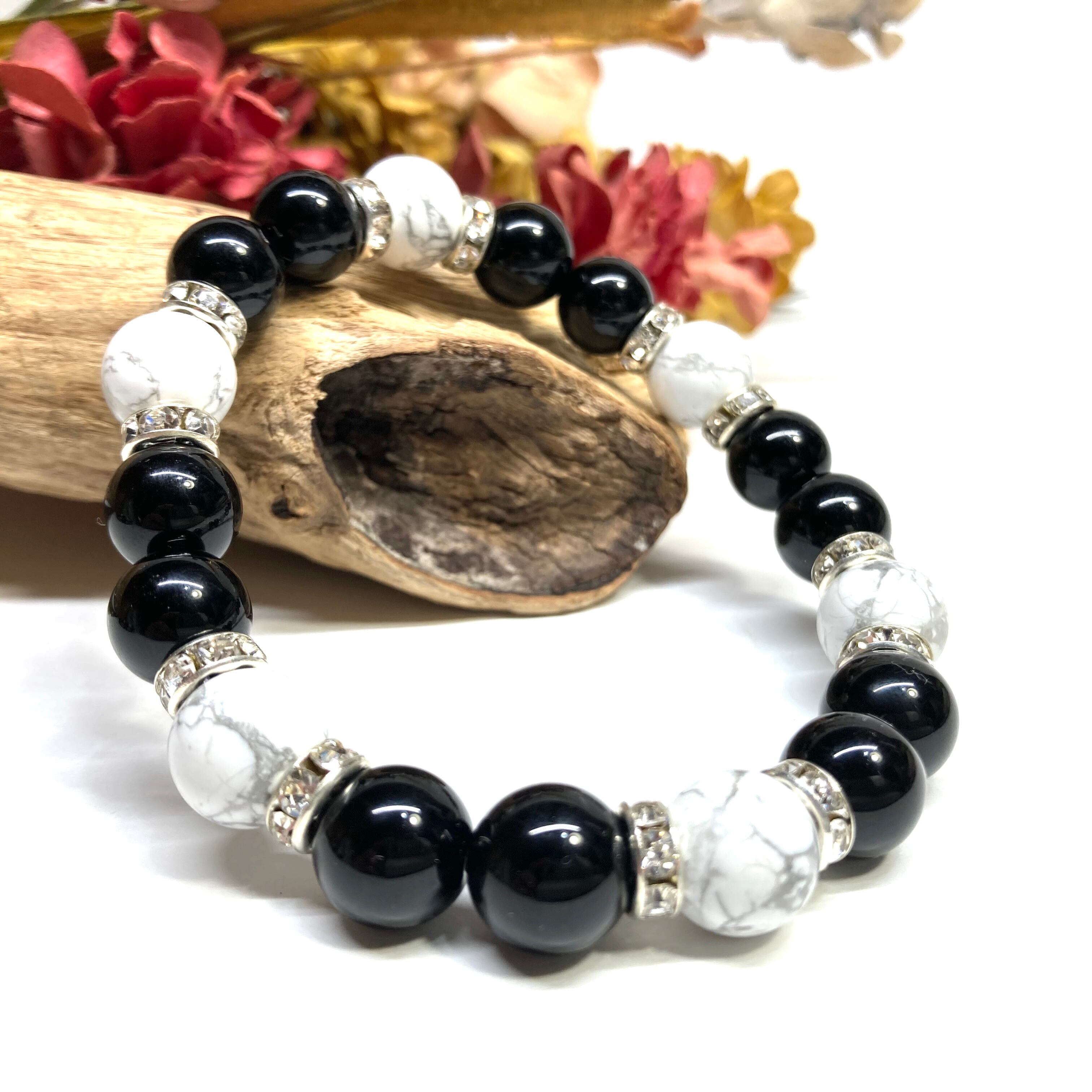 モリオン&ハウライト パワーストーン ブレスレット 天然石ブレス (シルバー) 10mm メンズ・レディース 厄除け ストレス解消 お守り ☆