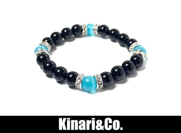 こちらは、8mm玉のライトブルーキャッツアイとオニキスを使用したパワーストーンブレスレットです。間にはシルバーのロンデルを挟み高級感ある大人っぽいデザインに仕上がっています。サイズは内周 約15cm(手首周りを測り少し余裕をもってお買い求めくださいませ。) です。気になる方は是非この機会にどうぞ。