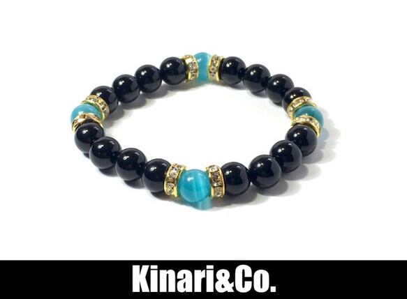 オニキス&キャッツアイ(ライトブルー) パワーストーン ブレスレット (ゴールド)レディース 女性 数珠ブレス 開運 プレゼント ギフト