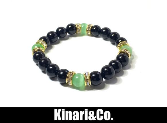 オニキス&キャッツアイ(ライトグリーン) パワーストーン ブレスレット (ゴールド)レディース 女性 数珠ブレス 開運 プレゼント ギフト