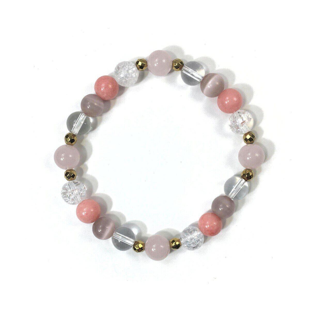 ローズクォーツ×キャッツアイ×水晶×ジェイド パワーストーン ブレスレット 8mm レディース 女性 数珠ブレス 開運 プレゼント ギフト