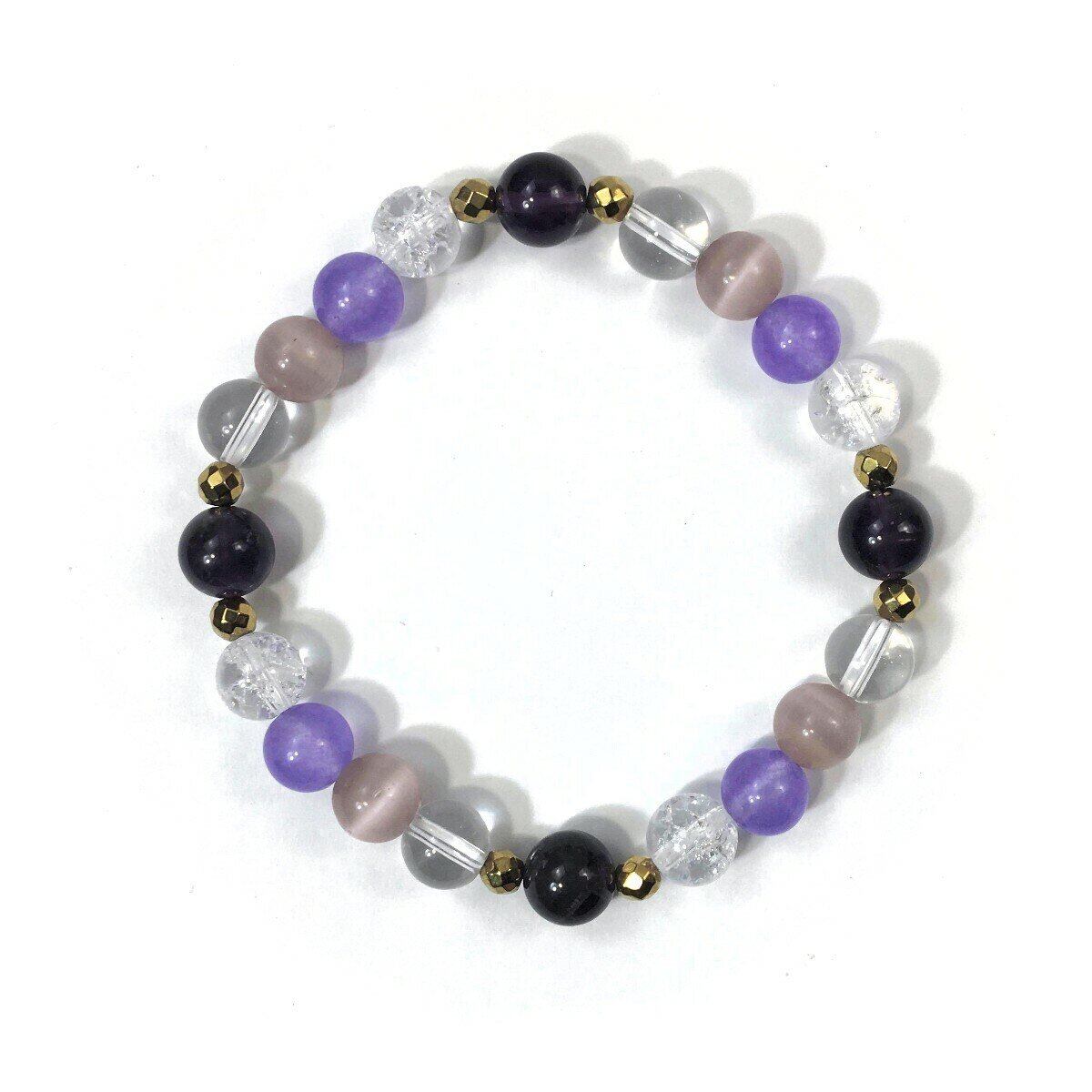 アメジスト×キャッツアイ×水晶×ジェイド パワーストーン ブレスレット 8mm レディース 女性 数珠ブレス 開運 プレゼント ギフト