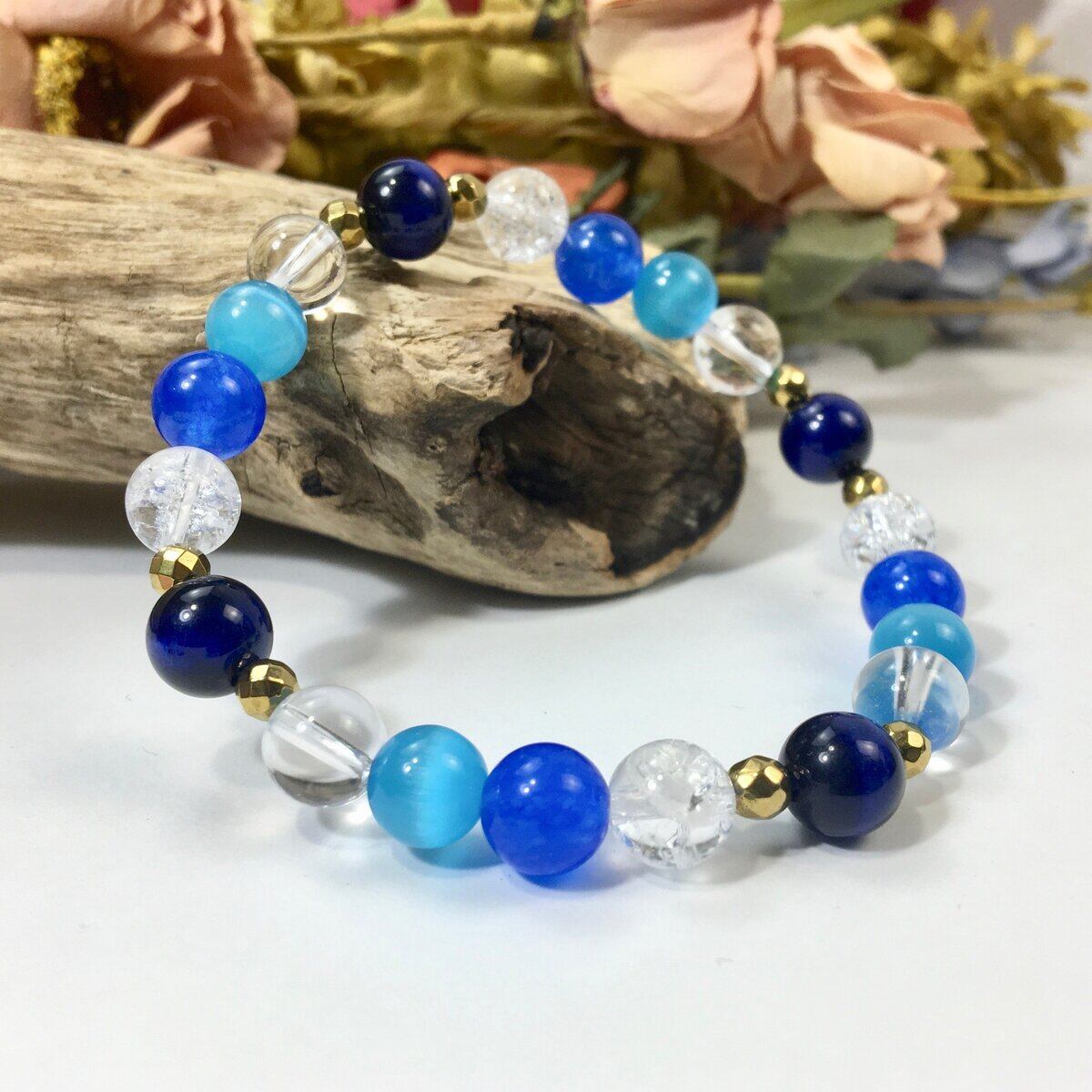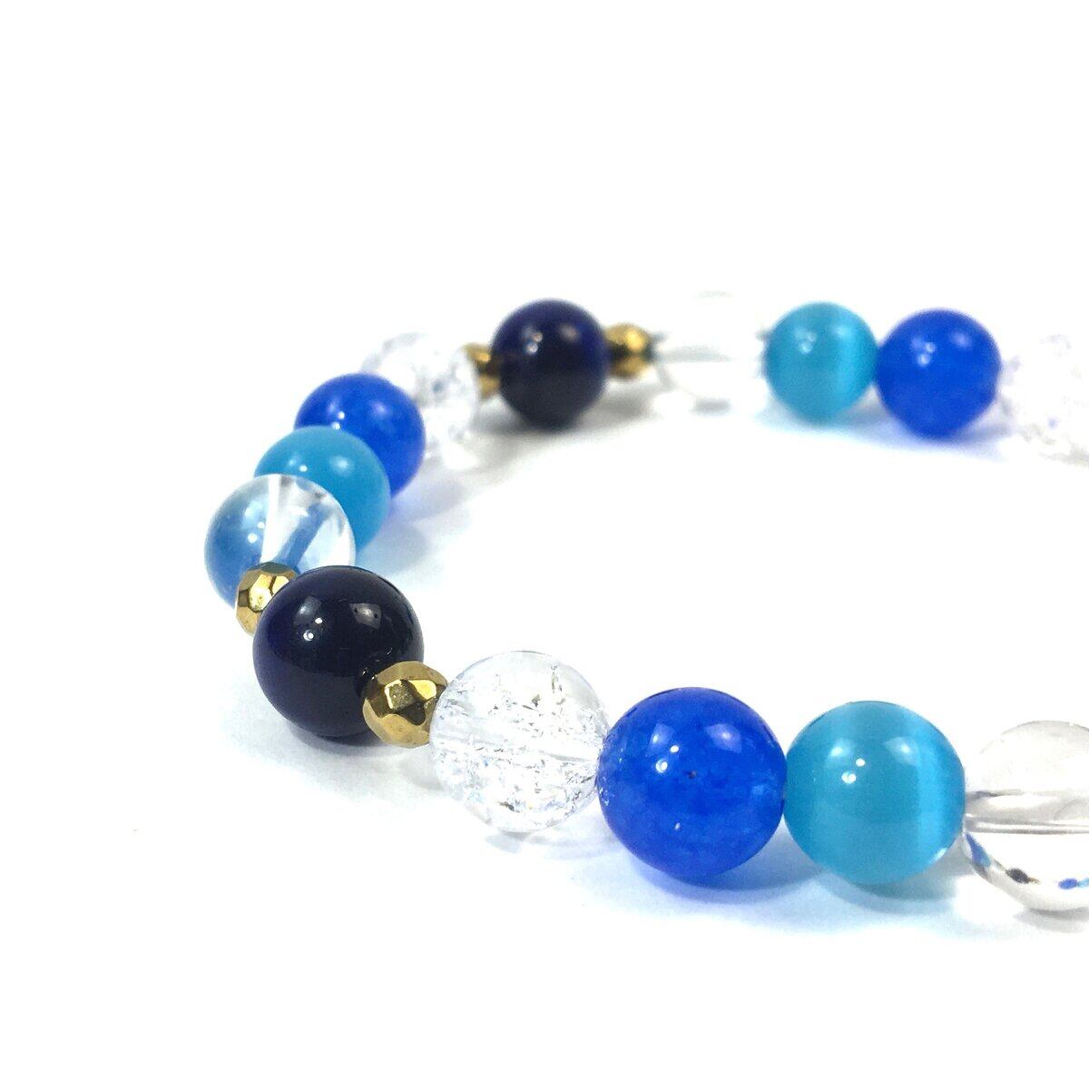 ブルータイガーアイ×キャッツアイ×水晶×ジェイド パワーストーン ブレスレット 8mm レディース 女性 数珠ブレス 開運 プレゼント ギフト