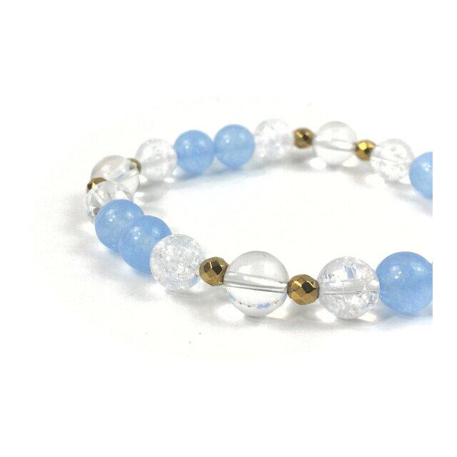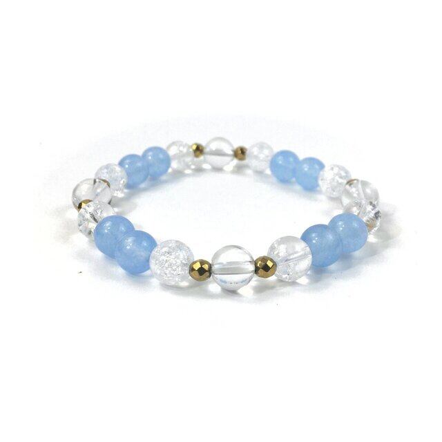 水晶×クラック水晶×ジェイド(シーブルー) パワーストーン ブレスレット 8mm レディース 女性 数珠ブレス 開運 プレゼント ギフト