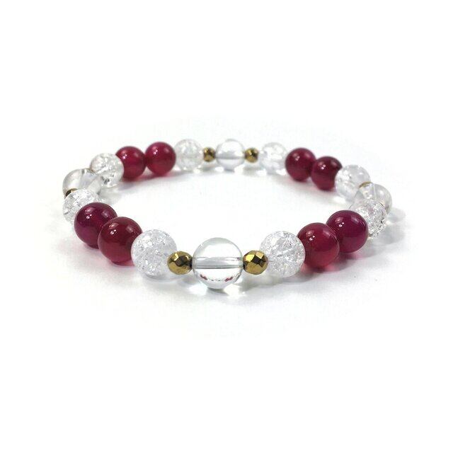 水晶×クラック水晶×ジェイド(マゼンダピンク) パワーストーン ブレスレット 8mm レディース 女性 数珠ブレス 開運 プレゼント ギフト
