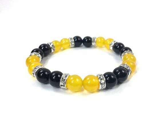 ジェイド(イエロー)×オニキス パワーストーン ブレスレット 8mm (シルバー)レディース 女性 数珠ブレス 開運 プレゼント ギフト