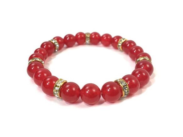 レッドジェイド パワーストーン ブレスレット ブレスレット 8mm (ゴールド)レディース 女性 数珠ブレス 開運 プレゼント ギフト