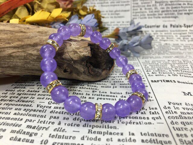 ラベンダーパープルジェイド パワーストーン ブレスレット 8mm (ゴールド)レディース 女性 数珠ブレス 開運 プレゼント ギフト