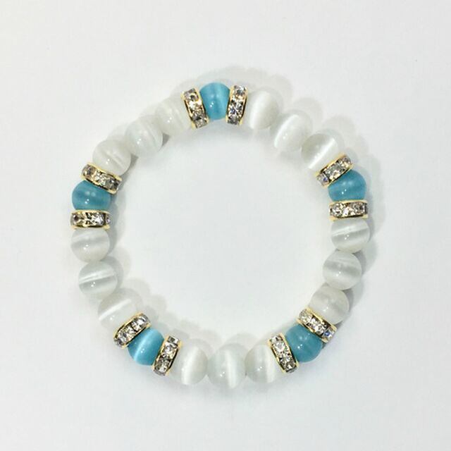 キャッツアイ(ライトブルー×ホワイト) ブレスレット パワーストーン (ゴールド)