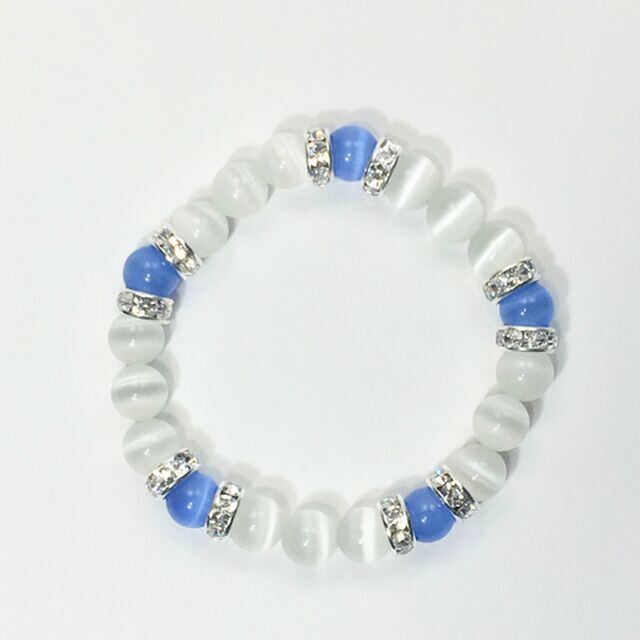 キャッツアイ(ブルー×ホワイト) ブレスレット パワーストーン (シルバー)