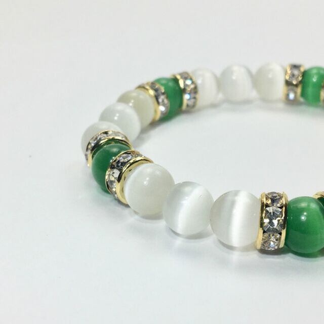 キャッツアイ(グリーン×ホワイト) ブレスレット パワーストーン (ゴールド)