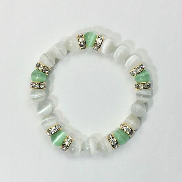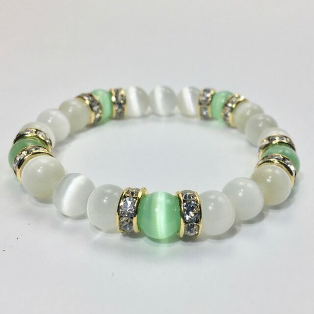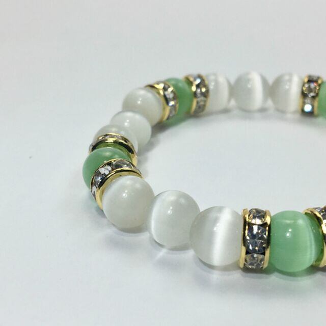 キャッツアイ(ライトグリーン×ホワイト) ブレスレット パワーストーン (ゴールド)