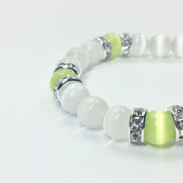 キャッツアイ(ライムグリーン×ホワイト) ブレスレット パワーストーン (シルバー)