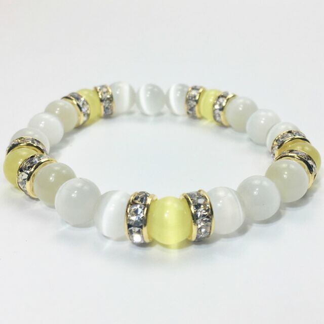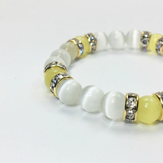 キャッツアイ(イエロー×ホワイト) ブレスレット パワーストーン (ゴールド)