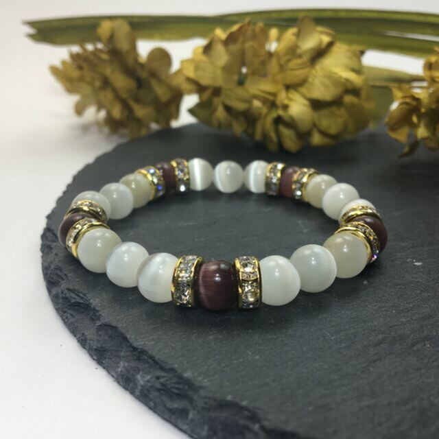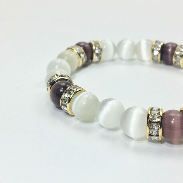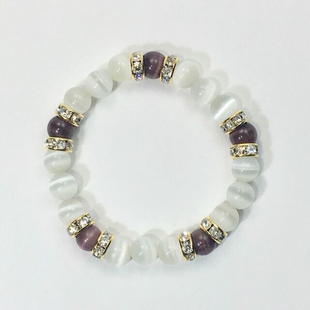 キャッツアイ(パープル×ホワイト) ブレスレット パワーストーン (ゴールド)