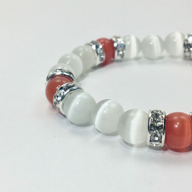 キャッツアイ(レッド×ホワイト) ブレスレット パワーストーン (シルバー)