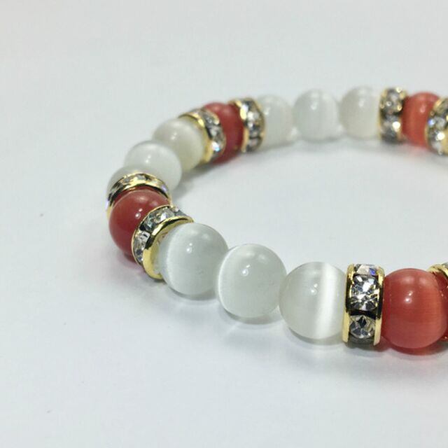 キャッツアイ(レッド×ホワイト) ブレスレット パワーストーン (ゴールド)