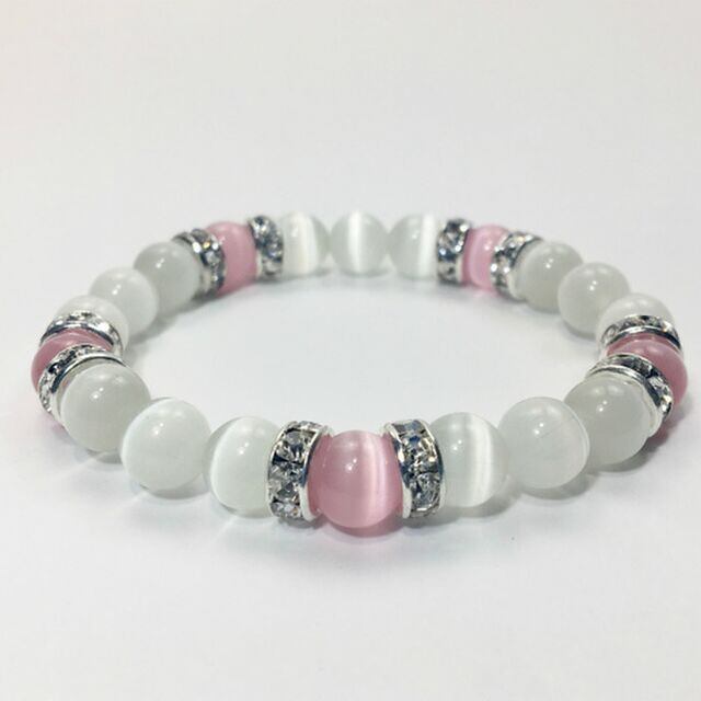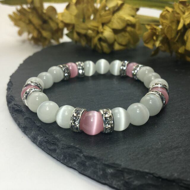 キャッツアイ(ピンク×ホワイト) ブレスレット パワーストーン (シルバー)
