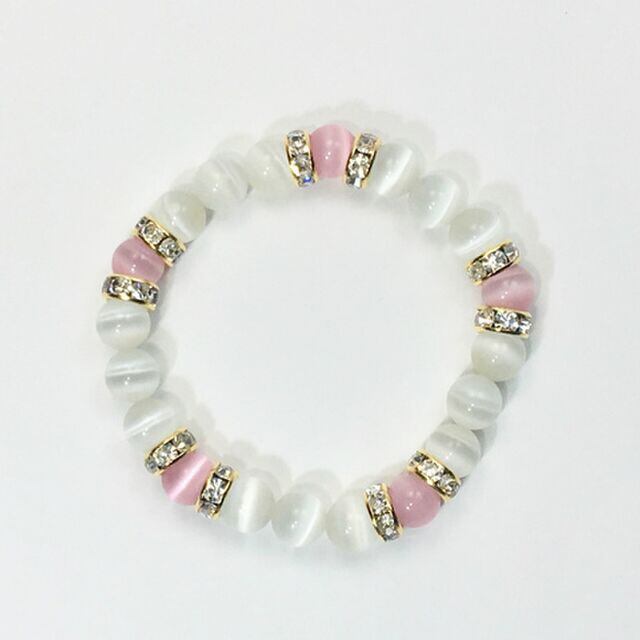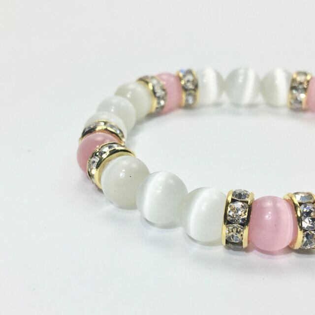 キャッツアイ(ピンク×ホワイト) ブレスレット パワーストーン (ゴールド)