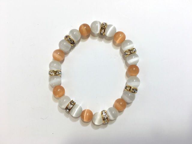 キャッツアイ(オレンジ、ホワイト) パワーストーン ブレスレット G