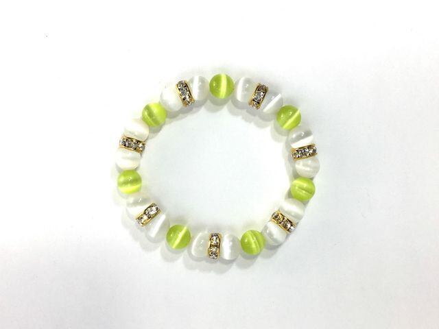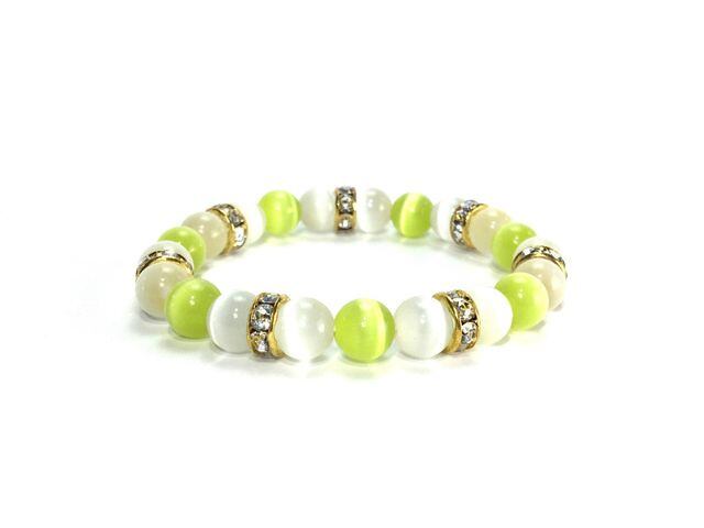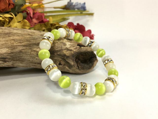 キャッツアイ(ライムグリーン、ホワイト) パワーストーン ブレスレット G