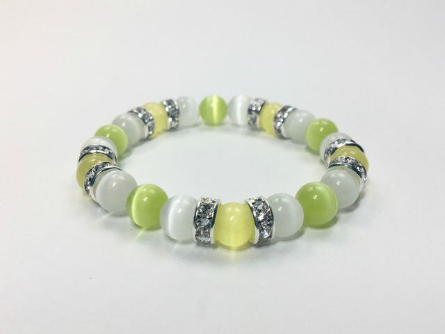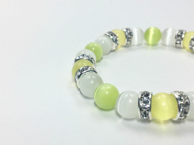 キャッツアイ(イエロー×ホワイト×ライムグリーン)ブレスレット パワーストーン S