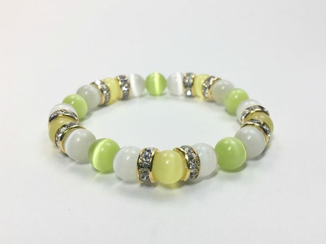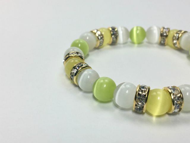 キャッツアイ(イエロー×ホワイト×ライムグリーン)ブレスレット パワーストーン G