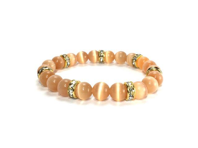 こちらは、8mm玉のオレンジキャッツアイを使用したパワーストーンブレスレットです。間にはゴールドのロンデルを挟み高級感ある大人っぽいデザインに仕上がっています。内周約14cmです。気になる方は是非この機会にどうぞ。