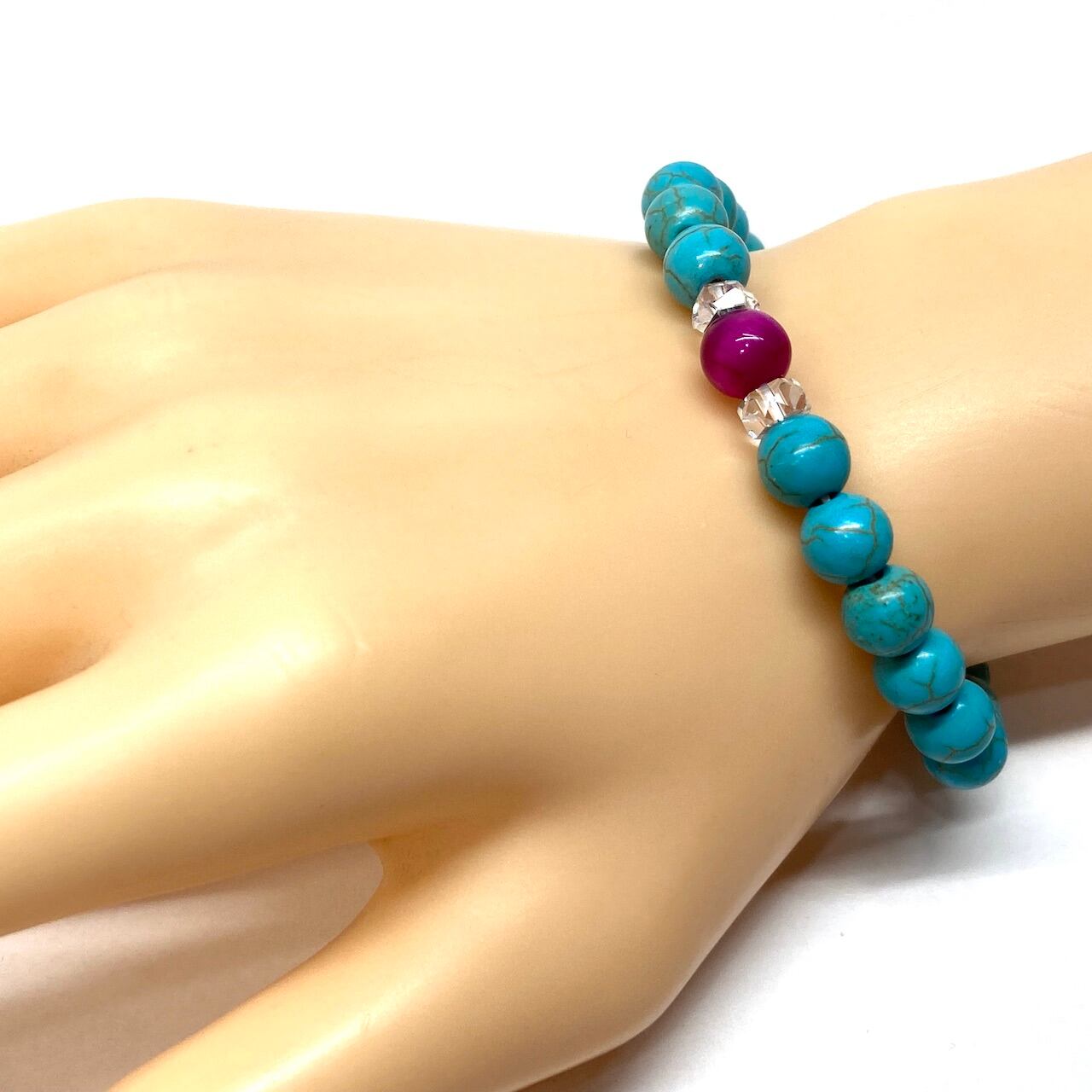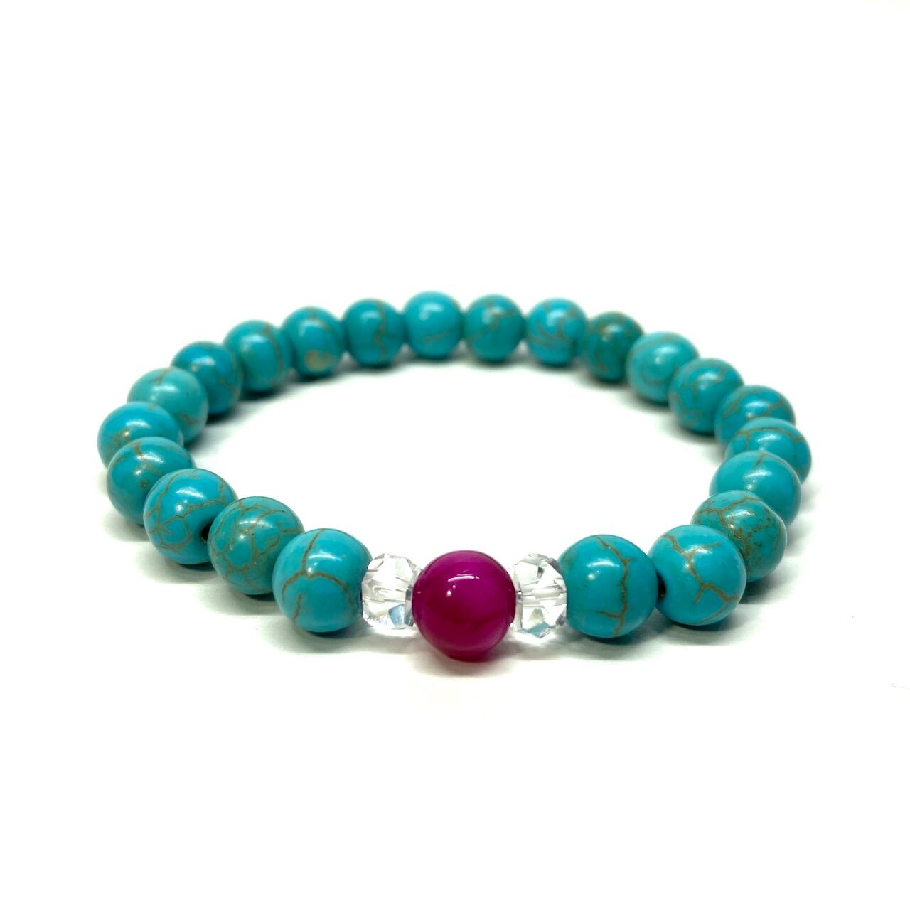 こちらは、ピンクタイガーアイとターコイズを組み合わせた一粒ブレスレットです。今回はお買い得プライスにて販売しておりますので是非この機会にどうぞ。(お買い得プライスは予告なく終了する場合がありますのでお早めに!!) 石大きさ8mm玉で基本サイズは内周15cm(サイズ変更は1cmあたり100円で承っております。サイズ変更の場合は金額変更しますのでメッセージにてご連絡くださいませ。)です。