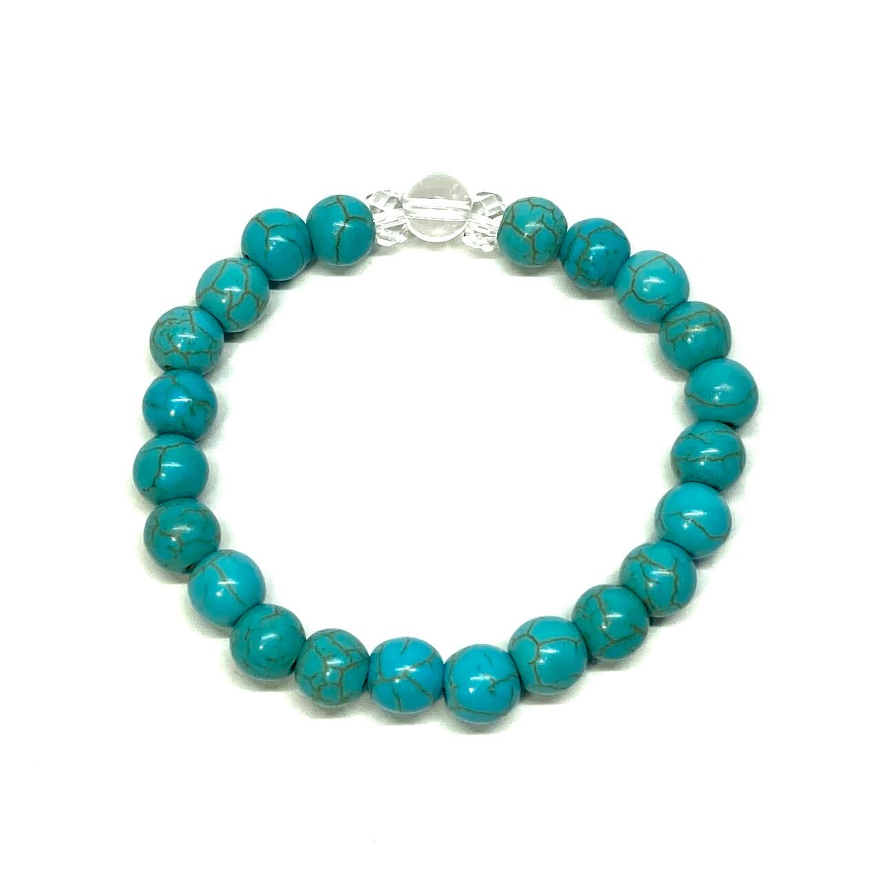 こちらは、水晶とターコイズを組み合わせた一粒ブレスレットです。今回はお買い得プライスにて販売しておりますので是非この機会にどうぞ。(お買い得プライスは予告なく終了する場合がありますのでお早めに!!) 石大きさ8mm玉で基本サイズは内周15cm(サイズ変更は1cmあたり100円で承っております。サイズ変更の場合は金額変更しますのでメッセージにてご連絡くださいませ。)です。