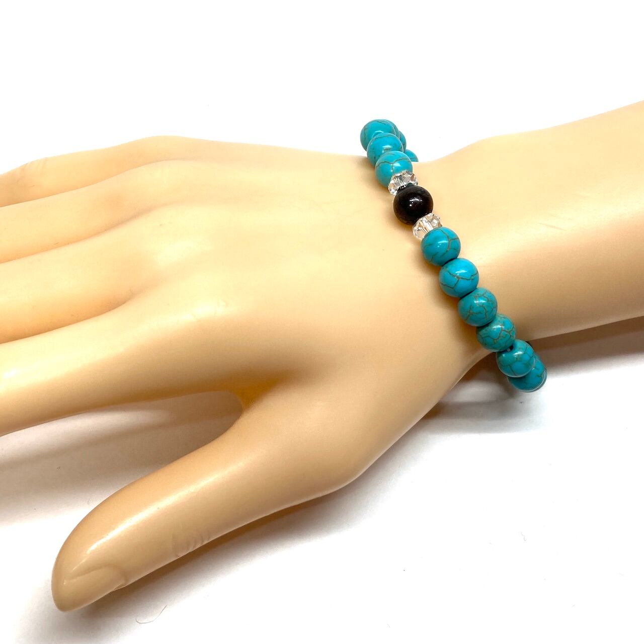 [ターコイズ (練り)]邪悪なものを退けて、幸運を引き寄せると伝えられるいるターコイズは、困難を乗り越えて願望達成をお手伝いしてくれると言われる、目標達成のお守りに人気のパワーストーンです。 災いから身を守り、成功へと導くと言い伝えられています。 仕事においての成功運を込めたお守りとして、また旅のお守りとして最適な意味合いのパワーストーンです。
