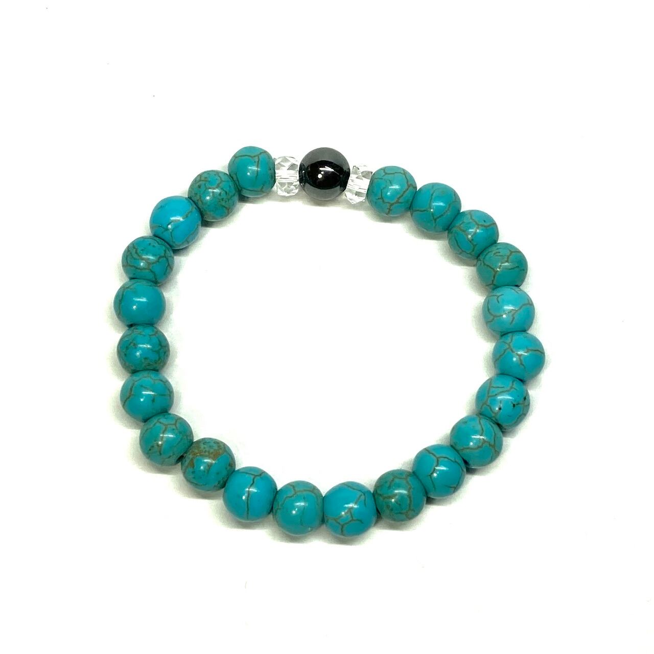 こちらは、ヘマタイトとターコイズを組み合わせた一粒ブレスレットです。今回はお買い得プライスにて販売しておりますので是非この機会にどうぞ。(お買い得プライスは予告なく終了する場合がありますのでお早めに!!) 石大きさ8mm玉で基本サイズは内周15cm(サイズ変更は1cmあたり100円で承っております。サイズ変更の場合は金額変更しますのでメッセージにてご連絡くださいませ。)です。