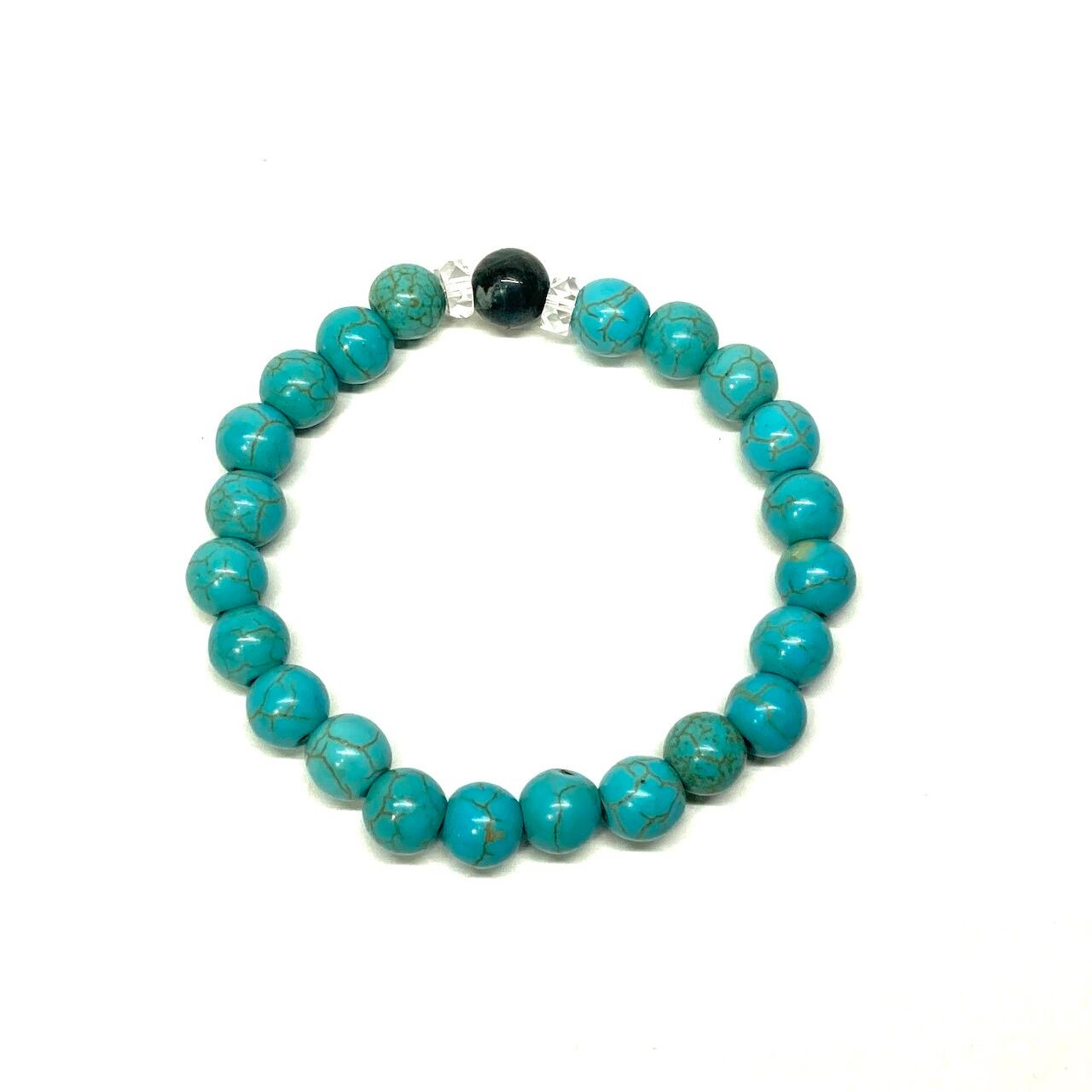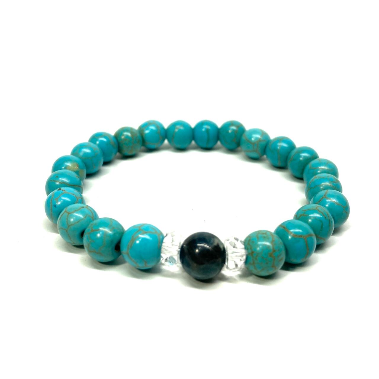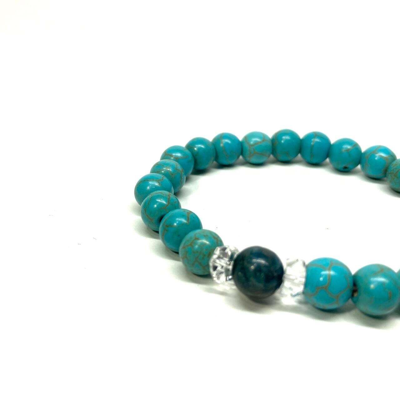 こちらは、アパタイトとターコイズを組み合わせた一粒ブレスレットです。今回はお買い得プライスにて販売しておりますので是非この機会にどうぞ。(お買い得プライスは予告なく終了する場合がありますのでお早めに!!) 石大きさ8mm玉で基本サイズは内周15cm(サイズ変更は1cmあたり100円で承っております。サイズ変更の場合は金額変更しますのでメッセージにてご連絡くださいませ。)です。